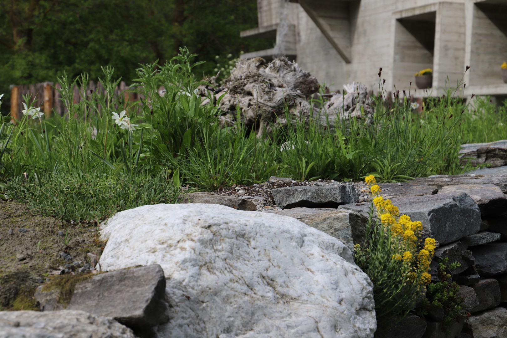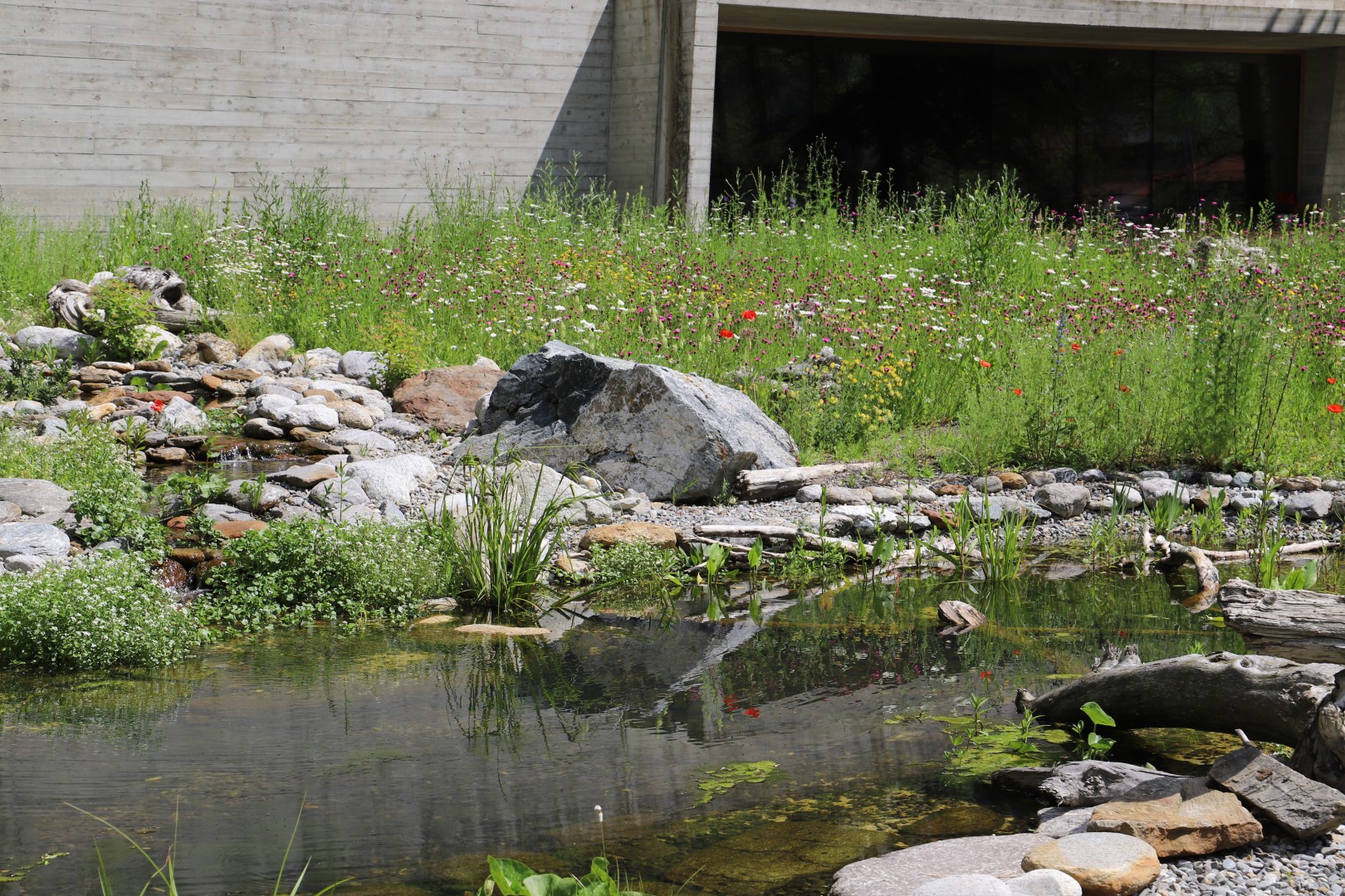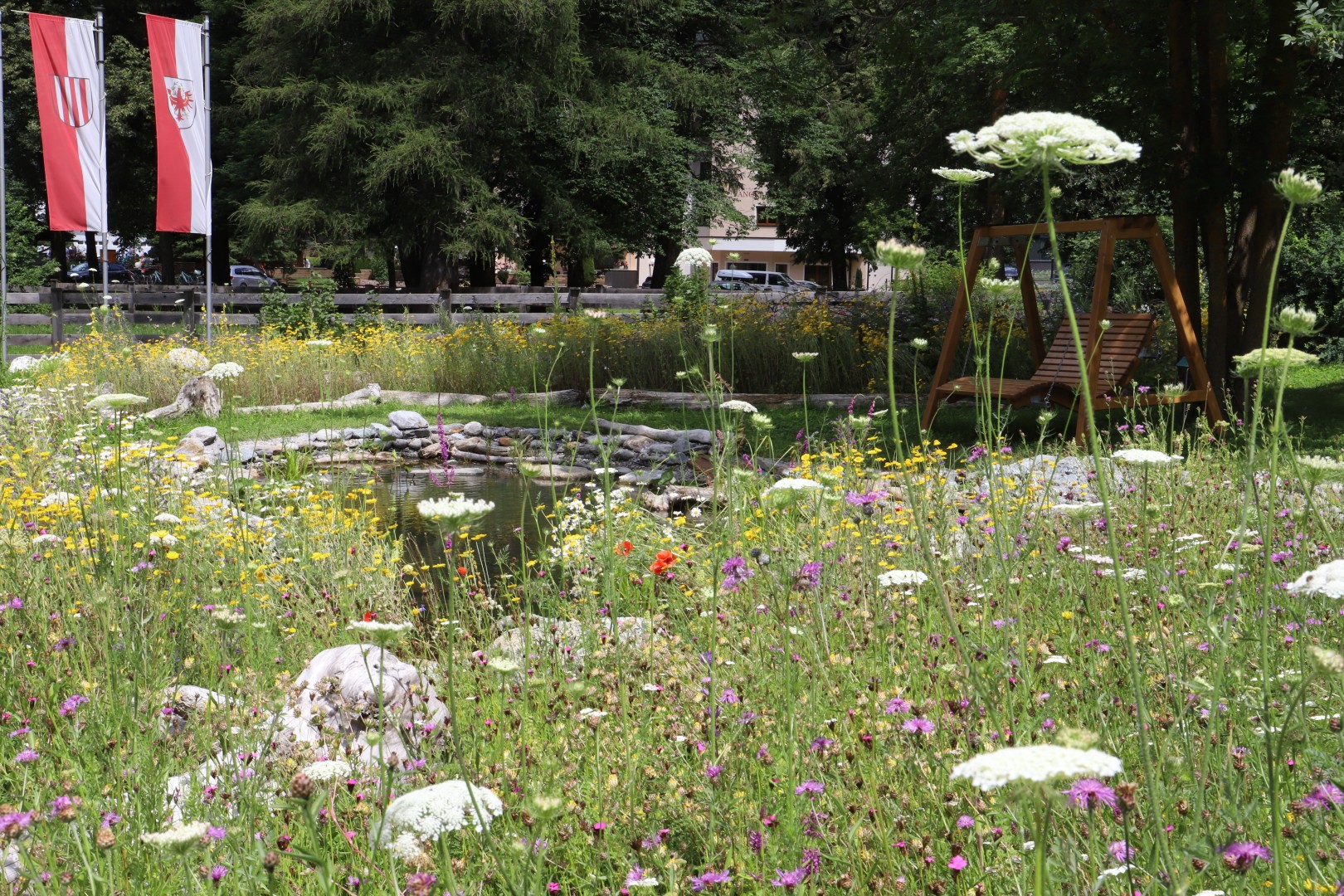 Bereits 2022 wurden erste Teile der Grünanlagen beim Naturparkhaus in Längenfeld naturnah umgestaltet. 2024 wurde nun der Rest angegangen! Auf über 600 m² entstand eine Teichanlage, Blumenwiesen, Säume und Staudenbeete.